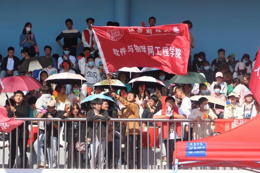 看台观众席的声声呐喊,为田径场上运动员们鼓足士气,助威于每一次拼搏。随着枪声响起,观众席人声鼎沸,院旗舞动,擂鼓振响,为每一位软件选手给予鼓励。当选手拼尽全力抵达终点,喝彩欢呼声随之而起、此起彼伏。选手与观众的互动彰显软件学子同为一心、携手共进的美好情谊,也为之后的比赛注入青春活力。