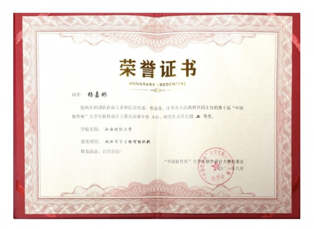 杨嘉彬在校期间成绩优秀,成绩排名稳定在前10名,获得过国家奖学金、江西建材奖学金,获评学习标兵,优秀学生等荣誉称号。杨嘉彬曾担任过院学生会视宣部委员,期间参与过学院微推、迎新晚会幕后场控、学院重大活动摄影等。此外,杨嘉彬还参与过棋社、春运志愿者、129大合唱等,曾获129大合唱先进个人头衔。