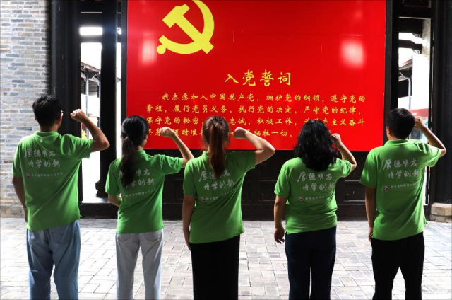 跨越时间长河,实践团成员在遂川县工农兵旧址看见波澜壮阔的井冈山革命斗争时期,在一份份历史记录中见证先辈们前赴后继,坚守理想信念,谱写出可歌可泣的革命篇章。他们的坚定信仰和崇高风范是黑夜中耀眼的光芒,照亮历史,耀见未来,照耀着遂川大地上一代又一代幼苗。这道光芒闪烁在实践团成员们的眼中,这份信念充斥在实践团每个成员心中。实践团重温入党誓词,砥砺前进决心,亲身感受红色文化,加深团队对革命文化的认识,铭记先烈的伟大历程,弘扬红色革命精神。通过对革命先烈艰苦奋斗历程的亲身体验,进一步提高对党艰苦创业的理性认识,培养江财学子坚韧不拔的革命精神。