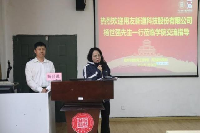 为了助力学校学子适应数字化转型的时代变革,成为符合时代需求的创新型人才,近日,软件与物联网工程学院邀请用友新道科技股份有限公司人才服务总监杨世强、教学服务经理江雷为学院学生开展“数智化背景下大学生职业规划分享”专题讲座,学院党委副书记匡琳主持讲座。