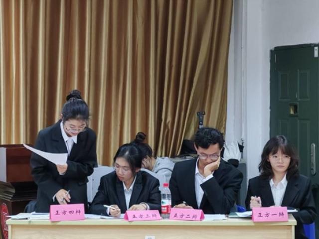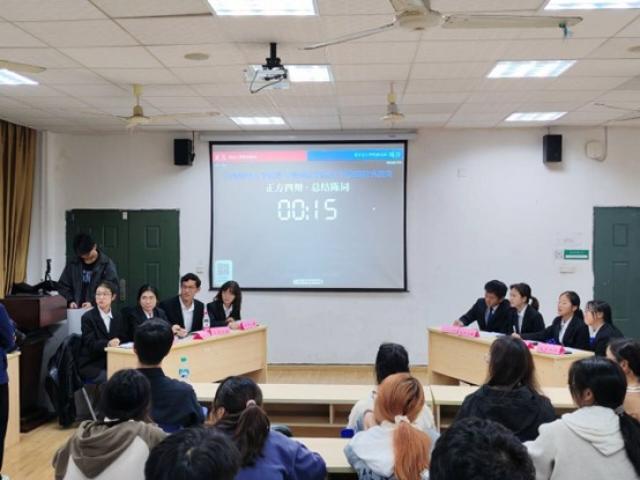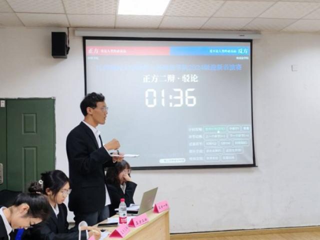 从开篇立论到攻辩环节,再到自由辩论和总结陈词,学院辩论队的每一位队员都展现出极高的专业素养和团队协作精神。他们逻辑清晰,论证严密,言辞犀利,在与反方外国语学院辩论队的交锋中丝毫不落下风。尤其是在自由答辩环节,双方针锋相对、毫不相让,攻防转换迅速而精彩。学院辩论队的队员们紧紧抓住对方的漏洞,巧妙地进行反击,同时不断完善和深化自身的论证,将比赛气氛推向了高潮。他们的精彩表现赢得了场下观众的阵阵掌声和欢呼声。
