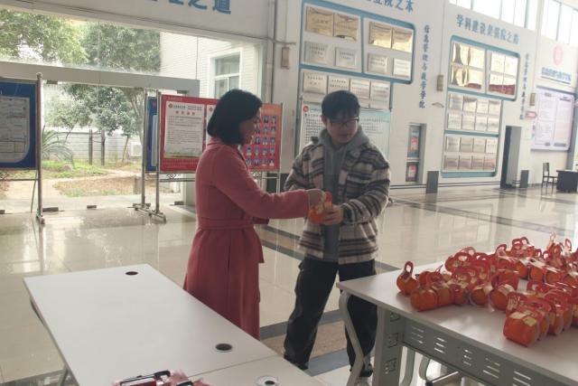 “研途暖心加油包”中既有由学校党委宣传部、融媒体中心与校友联络服务中心联合策划,EMBA赣州校友会及赣州校友会捐赠的“考研橙”,也包含了学院精心准备的考研文具。脐橙寄托着“心想事‘橙’”“一战‘橙’硕”的祝福,文具则承载着“笔下生花、逢考必过”的期盼。学院领导与老师们亲手将这份饱含祝福的“研途暖心加油包”递到学子手中。清甜的橙子为凛冽寒冬添上一份暖意,满载期许的文具静伴笔端,与学子一同书写青春的答卷。