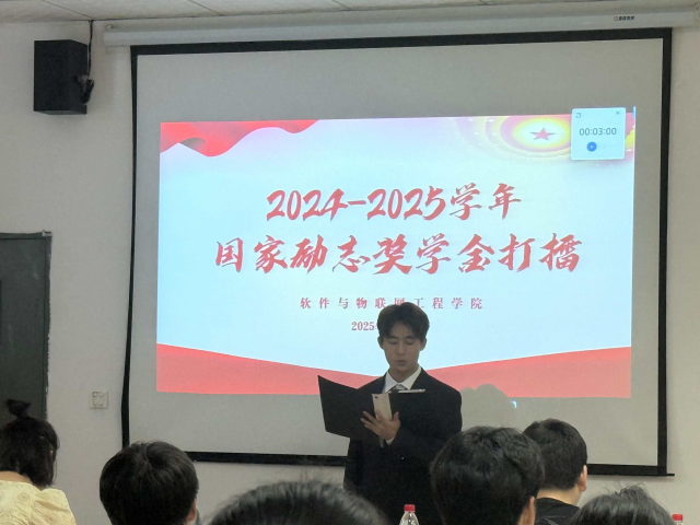 2025年10月9日12时40分,软件与物联网工程学院在荟庐一楼报告厅举行2024-2025学年国家励志奖学金打擂活动,党委副书记匡琳、班主任代表罗宇,专职辅导员陶丽、邹璐、王安亮受邀担任专家评委,并邀请24、25级学生担当大众评委。