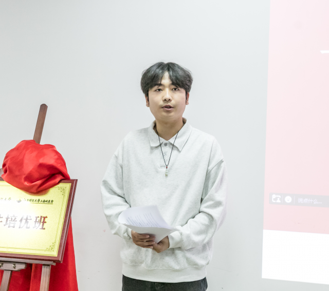 白耀辉院长肯定培优班的实践价值,希望学员勤思考、善创新,成长为卓越软件人才。随后,一期学员代表唐龙玉分享学习与实习经历,从知识应用、沟通协作、业务理解等方面给出建议;二期学员代表陶欣若表达对培优班的期待与学习决心,承诺全力以赴为学校“三大转型”贡献力量。