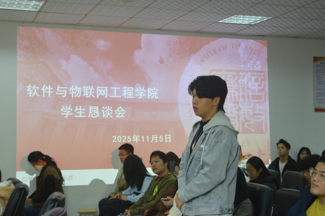 2025年11月5日中午,软件与物联网工程学院在荟庐二楼会议室召开院领导与学生恳谈会。院长白耀辉,党委书记季小刚,党委副书记匡琳、副院长罗远胜,学工团队全体成员以及各年级学生代表齐聚一堂,以面对面交流的方式倾听学生新生、破解成长难题。