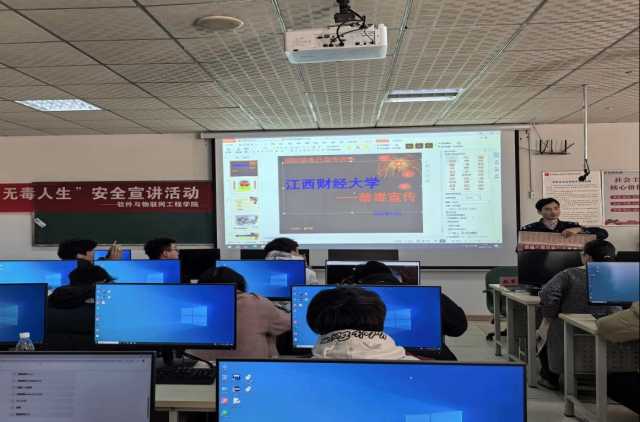 为切实强化青年学子禁毒意识与防范能力,构建安全文明的校园环境,11月19日下午2时30分,江西财经大学软件与物联网工程学院团委纪保部在荟庐W102教室组织举行禁毒宣传主题宣讲活动。活动特邀杨军贤警官主讲,软院各年级同学们齐聚现场,接受了一堂严肃且实用的禁毒教育课。