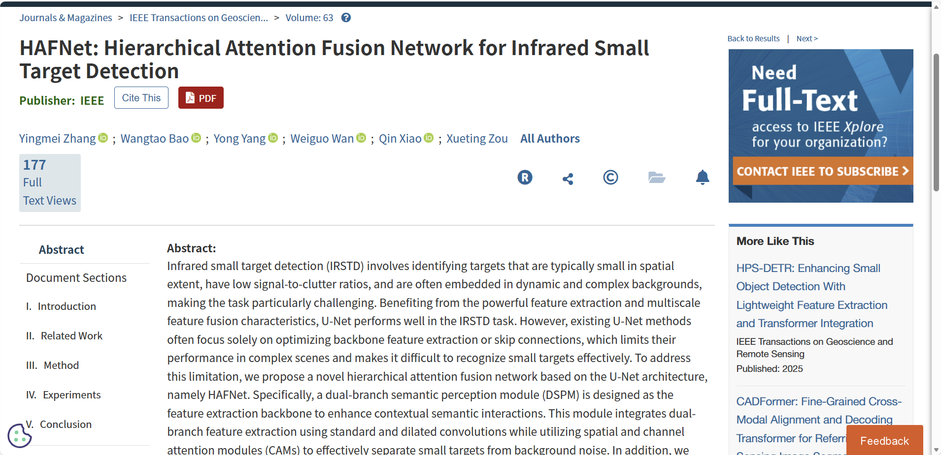 Recently,Dr. Yingmei Zhang, a young faculty member of the School of Softwareand Internet of Things Engineering, has recently published a research paper titled “HAFNet:Hierarchical Attention Fusion Network for Infrared Small Target Detection” in IEEE Transactions on Geoscience and Remote Sensing (TGRS), atop-tier and internationally recognized journal in the field of remotesensing.