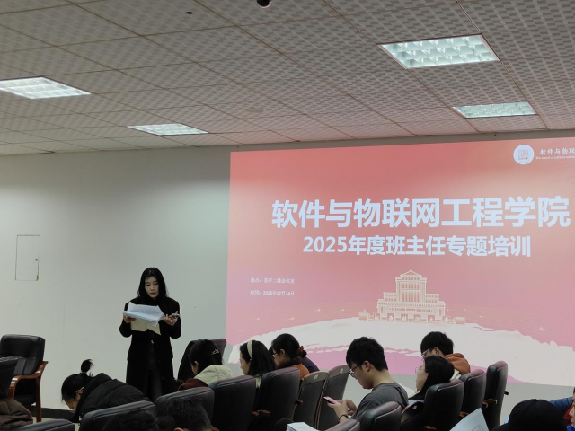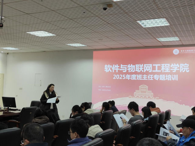 为全面总结本学年学生工作经验,为班主任队伍系统赋能,进一步提升育人实效,12月24日下午,软件与物联网工程学院于荟庐二楼会议室召开2025年度班主任专题培训会议。学院党委书记季小刚,党委副书记匡琳,全体班主任以及学工小组成员参加会议,会议由匡琳主持。
