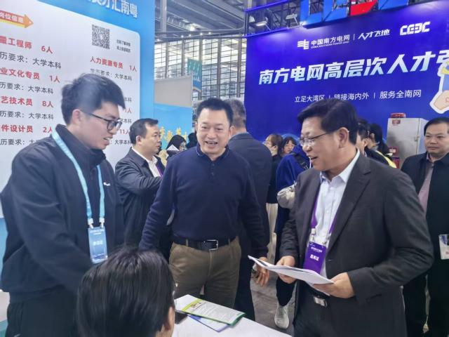 袁红林一行首先参加了深圳会展中心举办的“百万英才汇南粤”大型综合招聘会。作为广东省引才行动计划的年度收官之作,此次招聘会汇聚1800余家湾区重点用人单位,释放6.5万余个优质岗位,吸引海内外近15万名求职者参与。袁红林深入招聘现场,与深信服科技股份有限公司等企业招聘负责人亲切交流,详细介绍江西财经大学2026届毕业生概况以及学校“财经+大数据/人工智能”交叉学科培养成果。